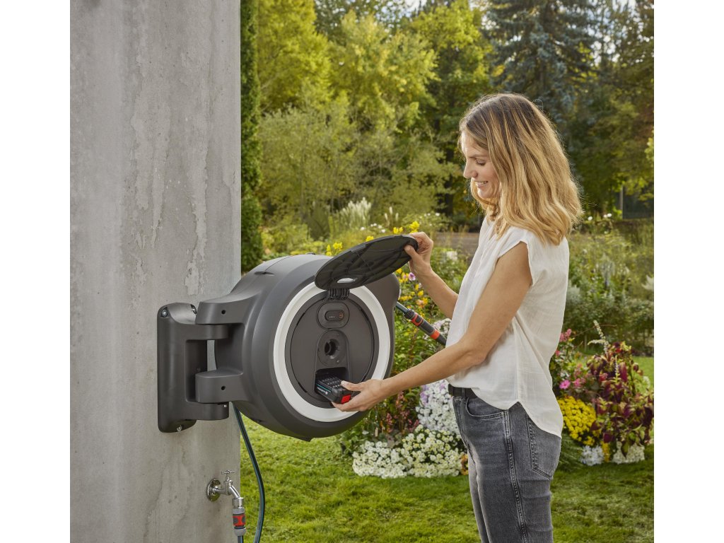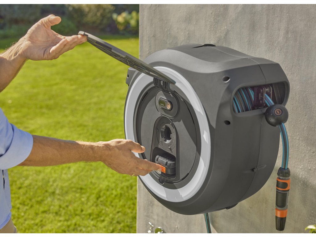 Durch die Schutzabdeckung wird der Akku vor Regen und Spritzwasser geschützt. Zudem kann der Akku einfach entnommen werden, damit die UV- und frostbeständige sowie vor Diebstahl gesicherte Schlauchbox das ganze Jahr über draußen bleiben kann. Auf das Qualitätsprodukt Made in Europe gewährt GARDENA eine Garantie von 5 Jahren: nach Registrierung unter gardena.com/registration innerhalb von 3 Monaten nach Kauf. Akkus und Ladegeräte (soweit enthalten) ausgeschlossen. Garantiebedingungen unter gardena.com/warranty.